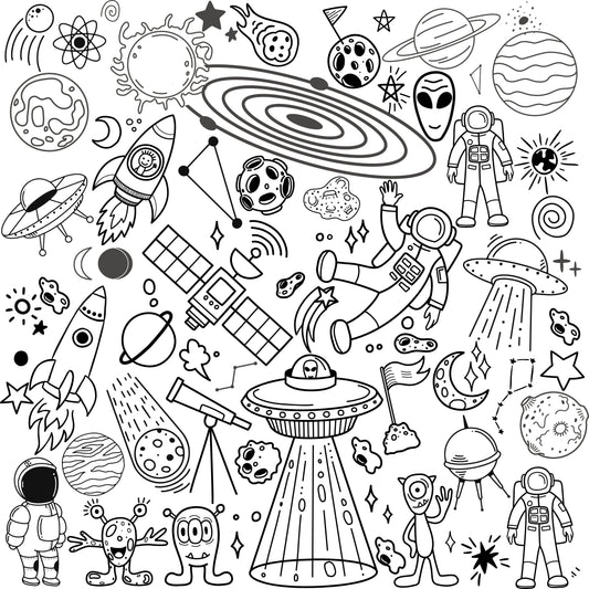 Space Adventure Doodle Coloring Wall